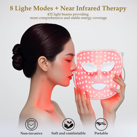 Red Light Face Mask, 8 Modes Portable Led Face Mask Light Therapy, 850Nm near Infrared Red Light Therapy for Face, Infrared Face Light Therapy, Face Skincare Tool