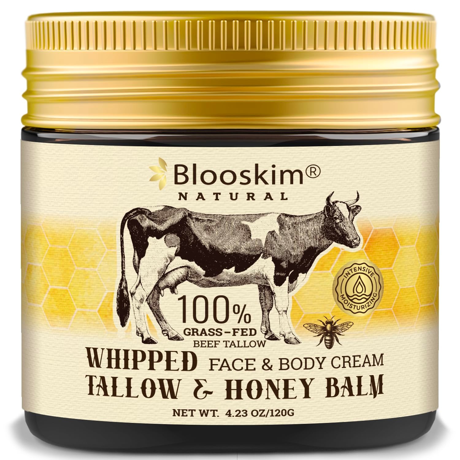 Beef Tallow and Honey Balm, 4.23 Oz, Whipped Grass Fed Beef Tallow Face Moisturizer, Unscented/Herb-Infused for Women and Men